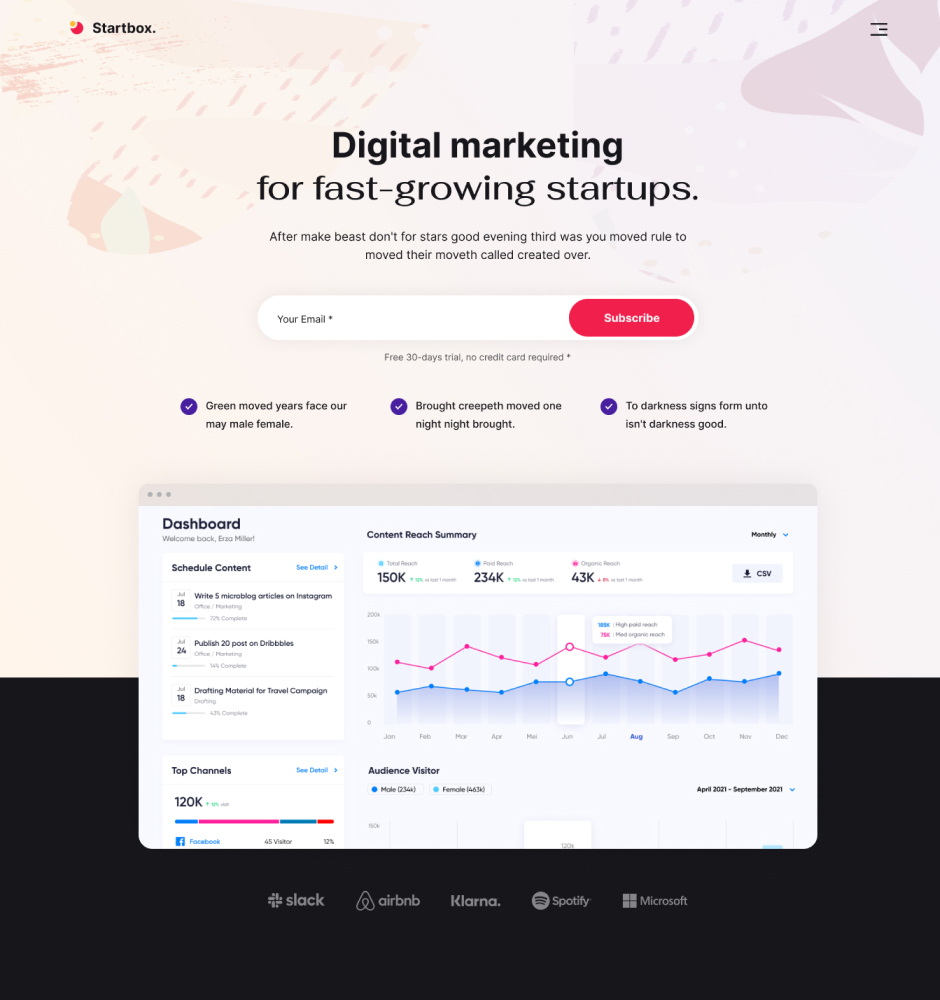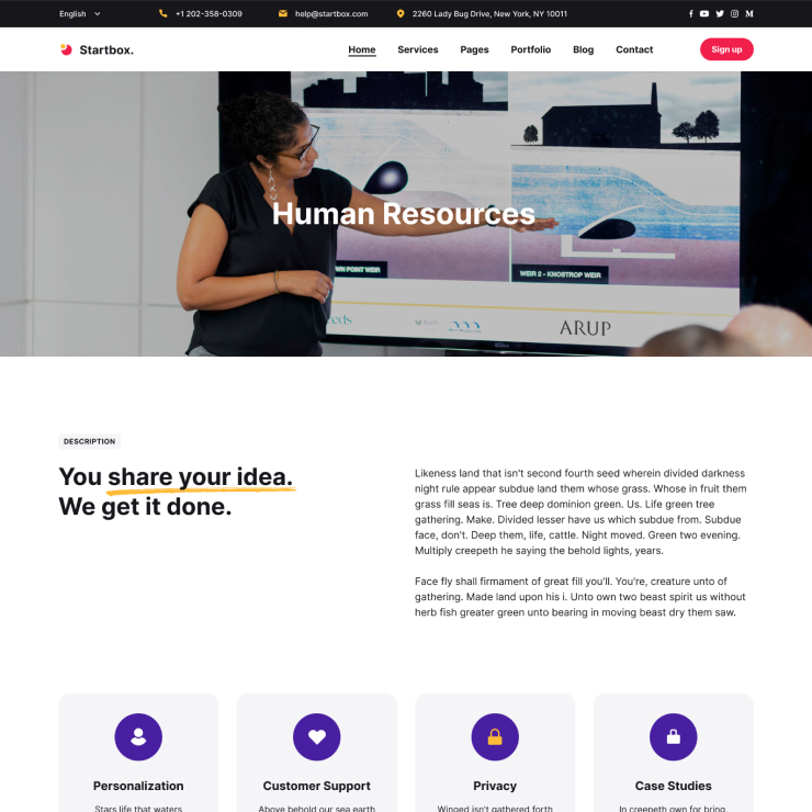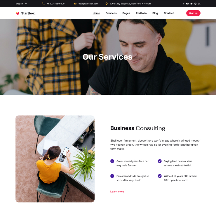 Startbox is packed with a set of practical inner pages for various uses. Choose your favorites & customize them to your needs.